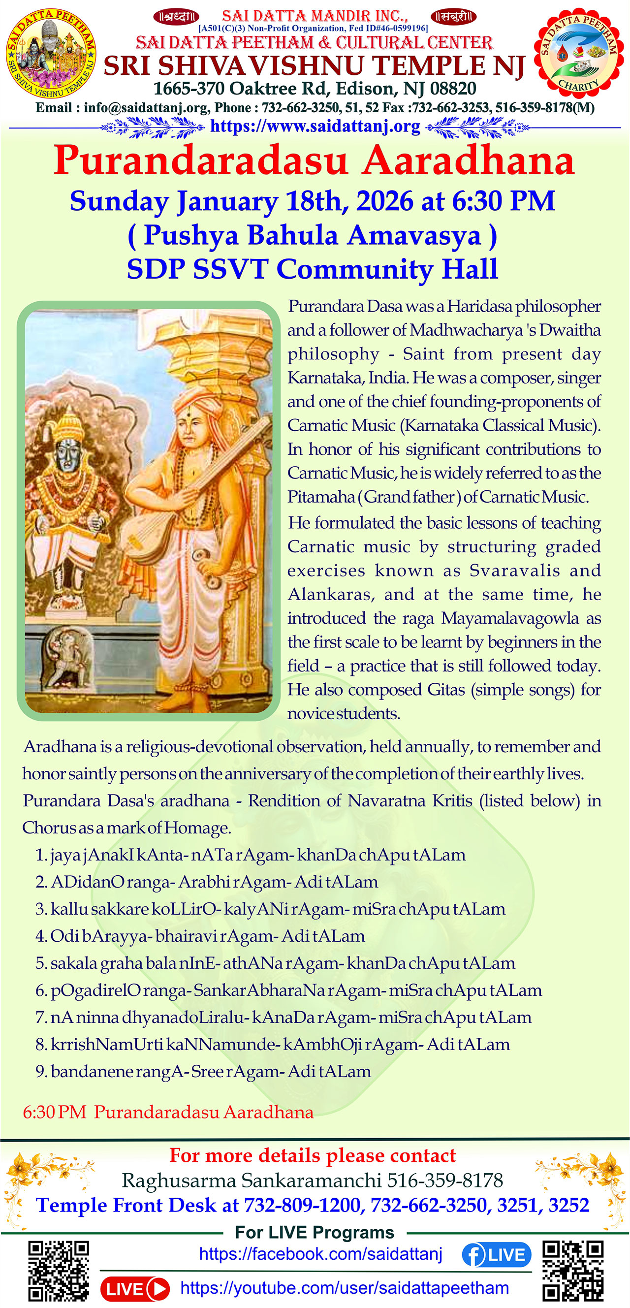 Purandaradasu Aaradhana 2026