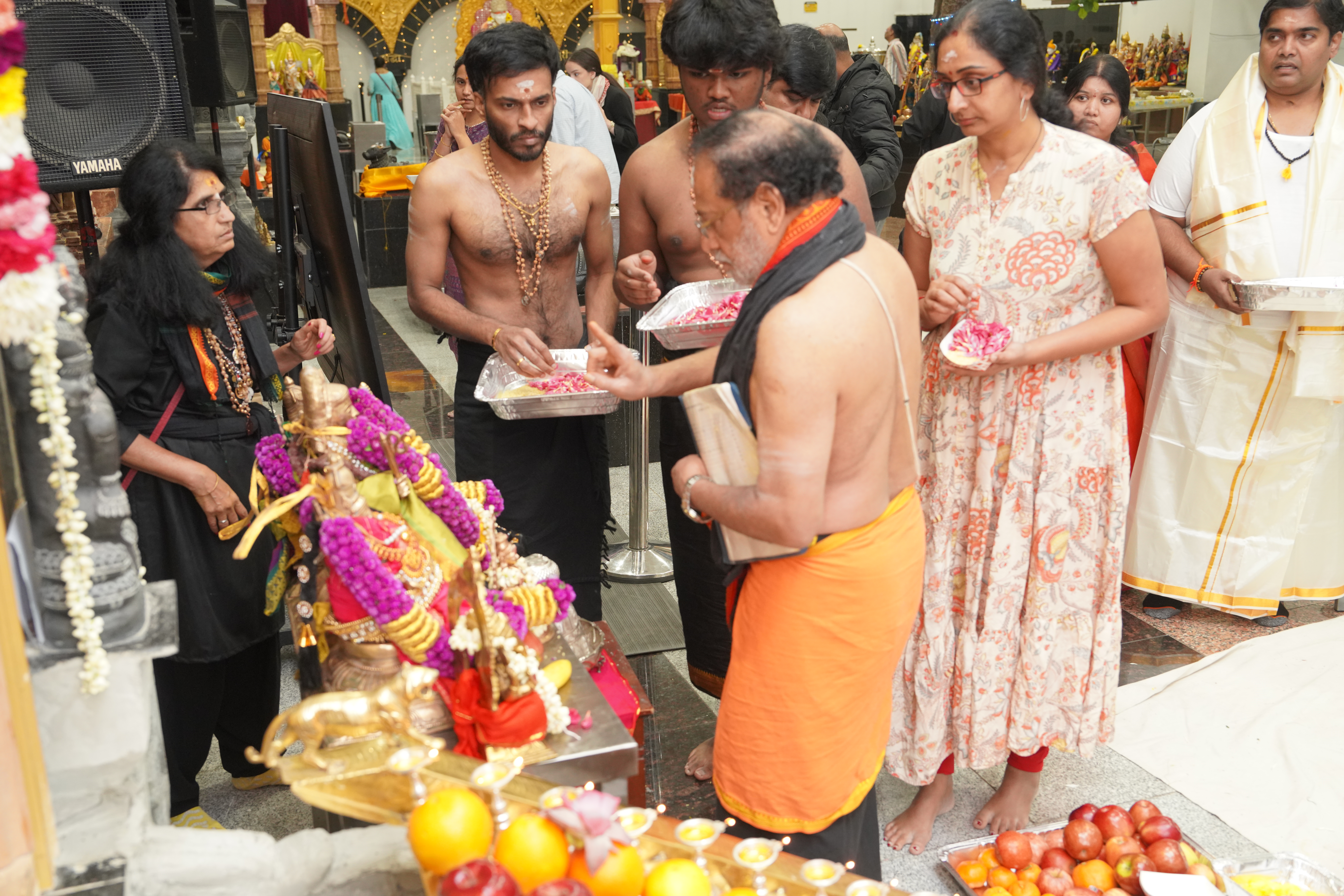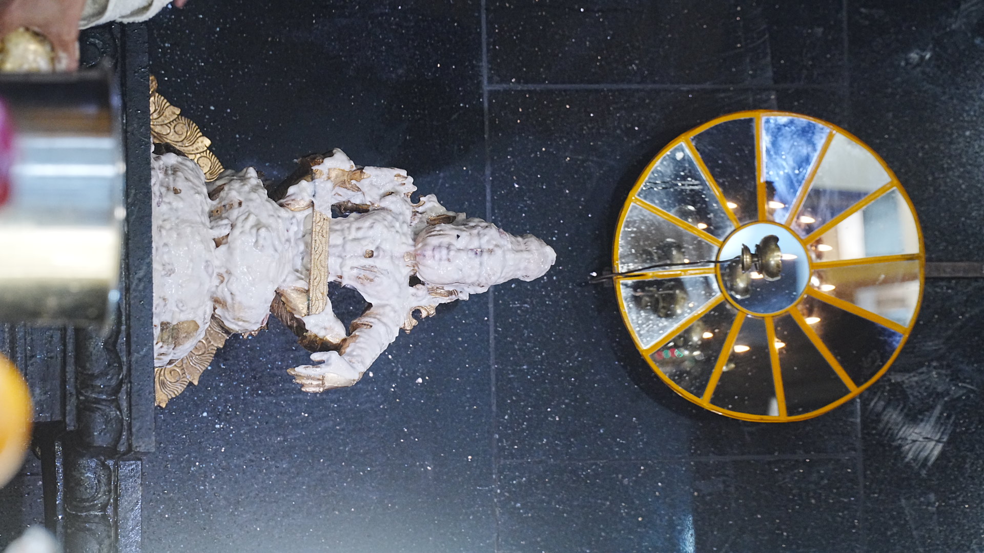 - Divya Gandham Dharayami – I apply the divine sandal paste.
