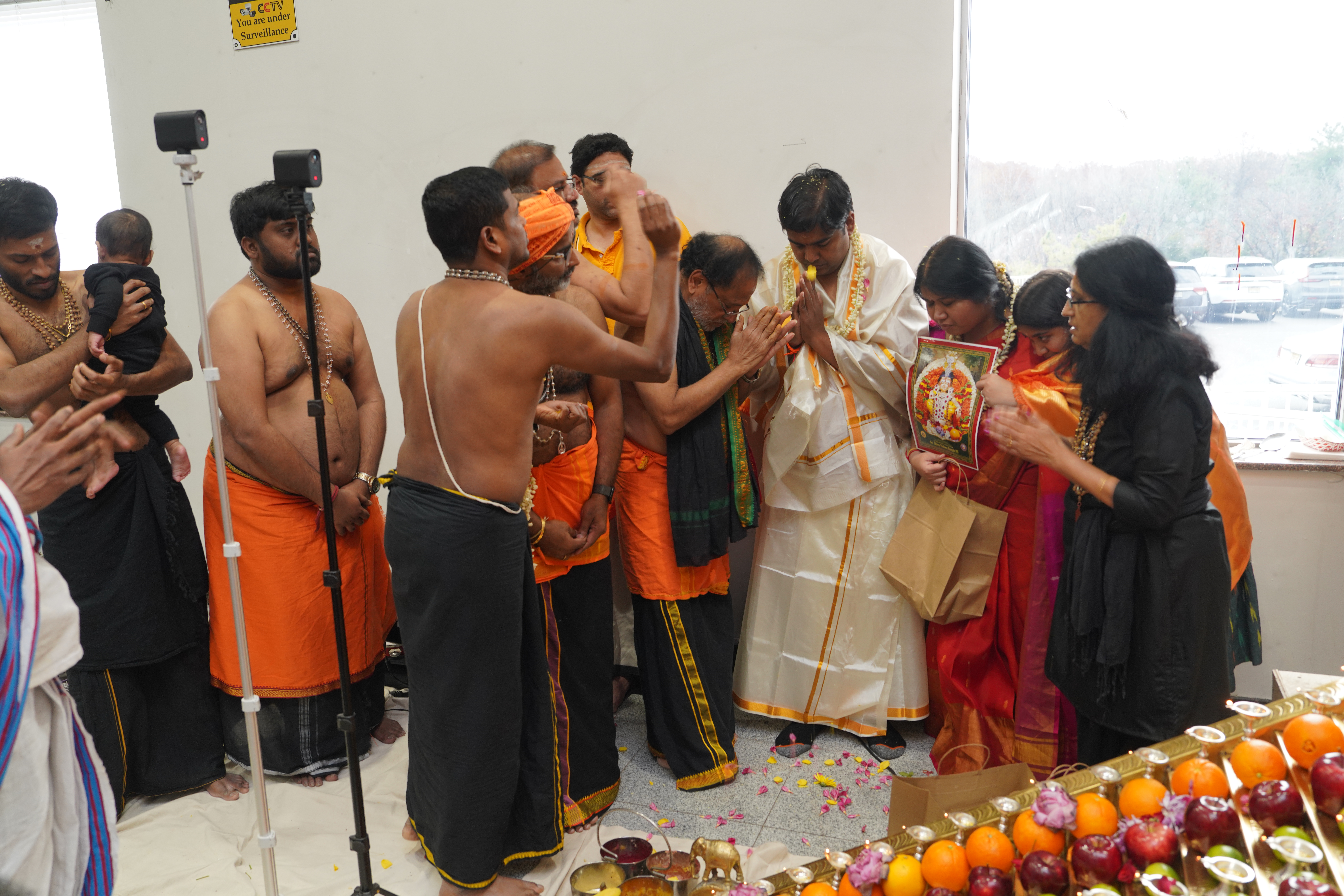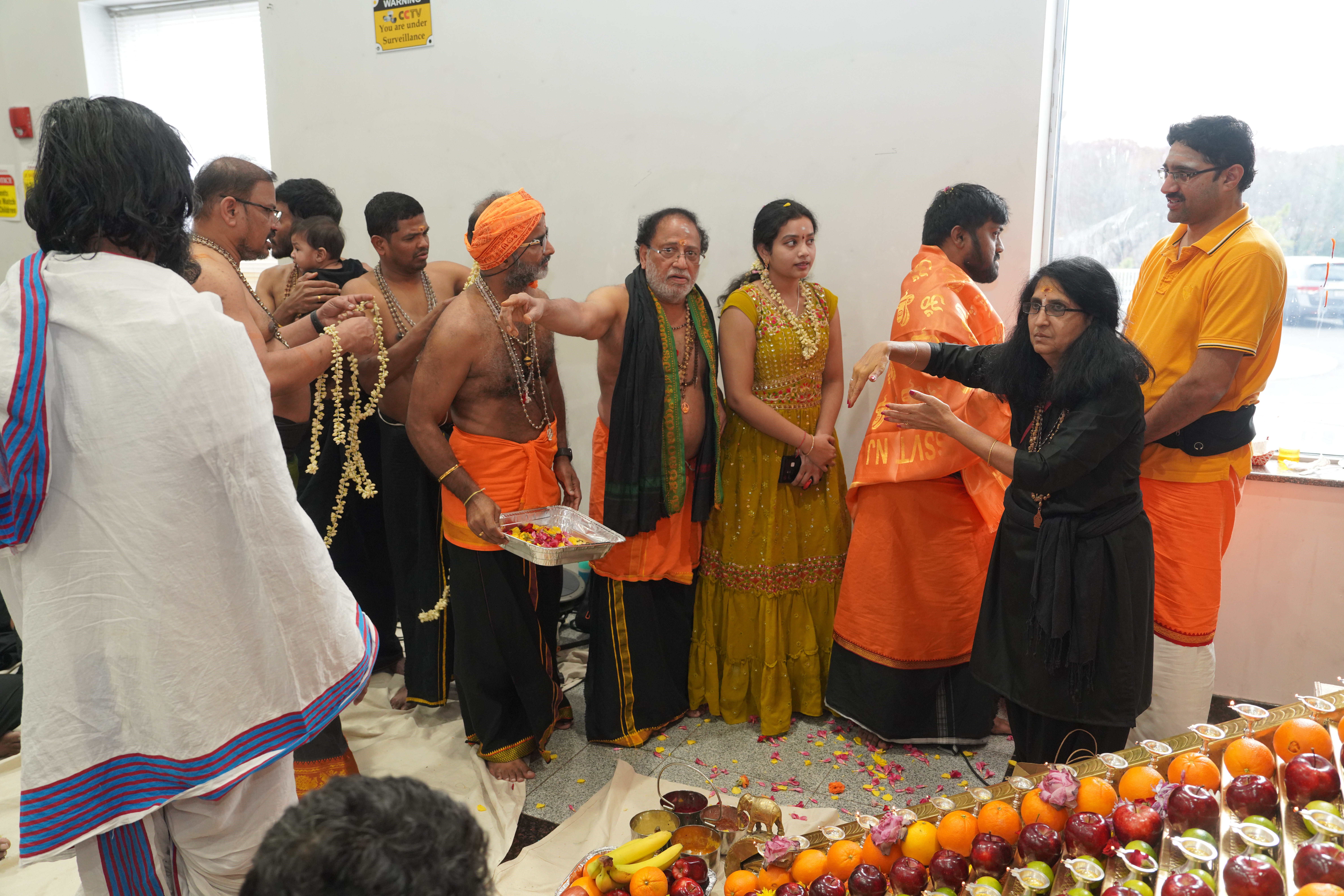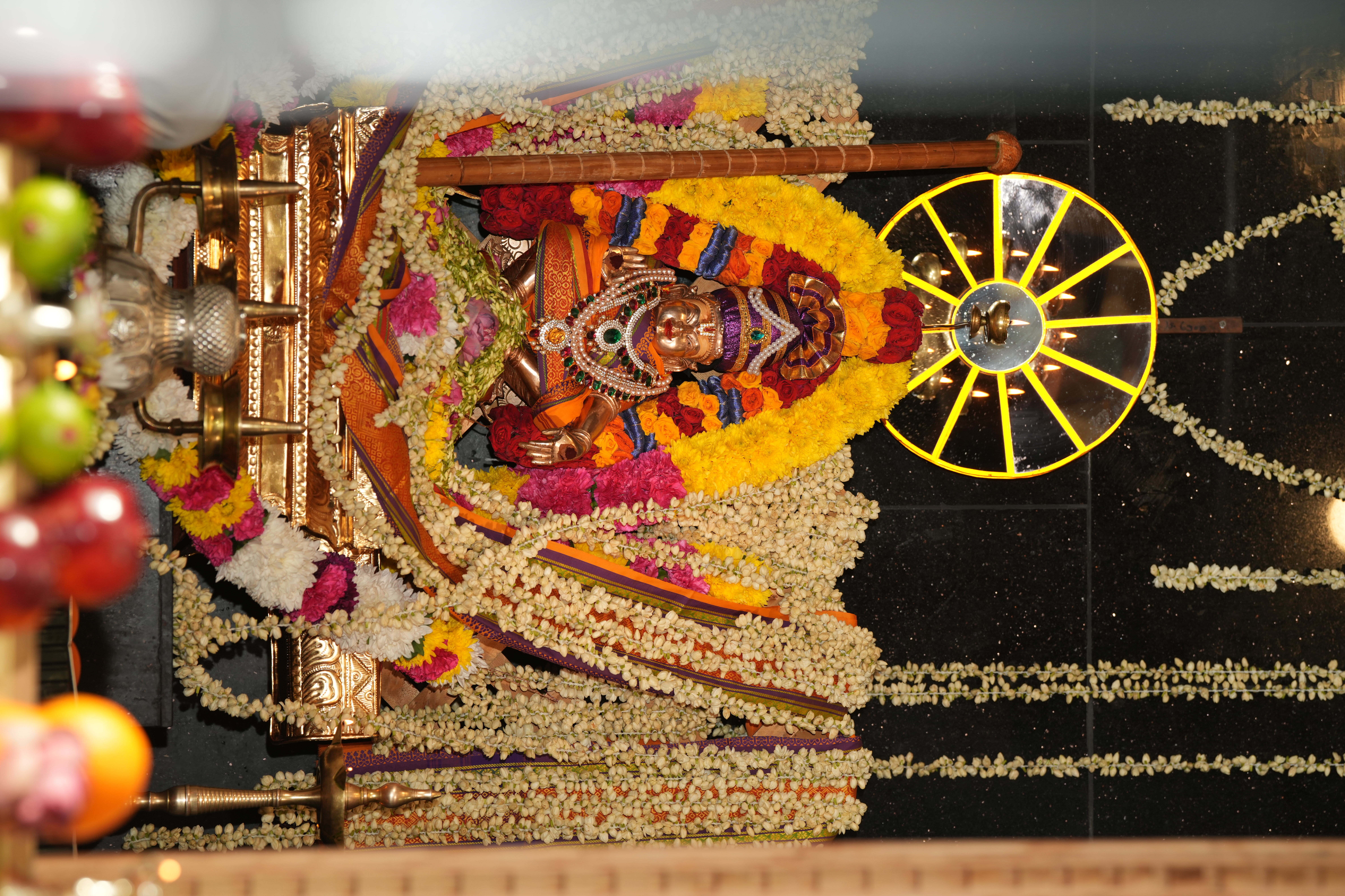 - Vastra Yagnopaveetha Uthriya Abharanam Artham Akshatam Samarpayami – I offer sacred rice grains along with the holy thread and upper garment.