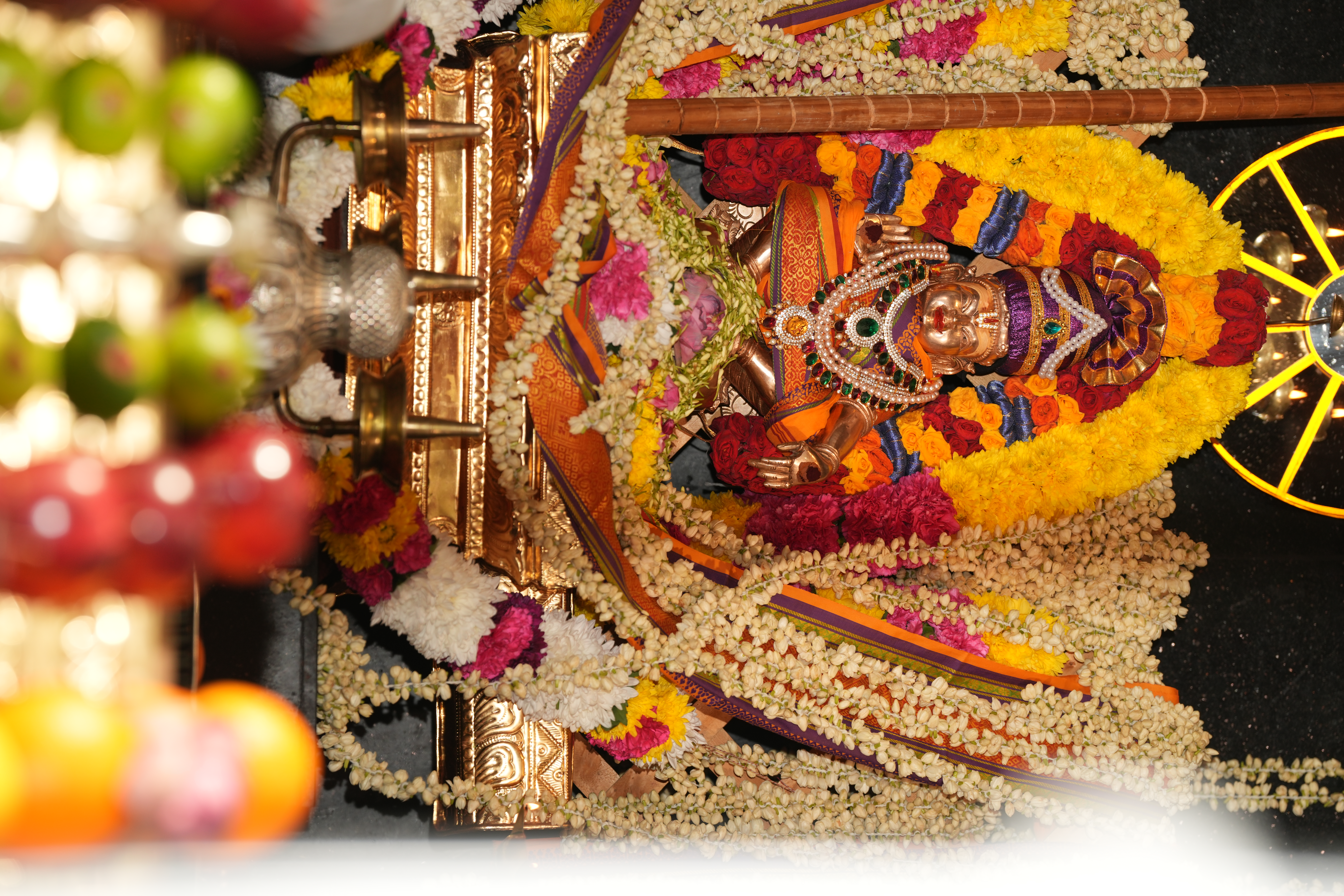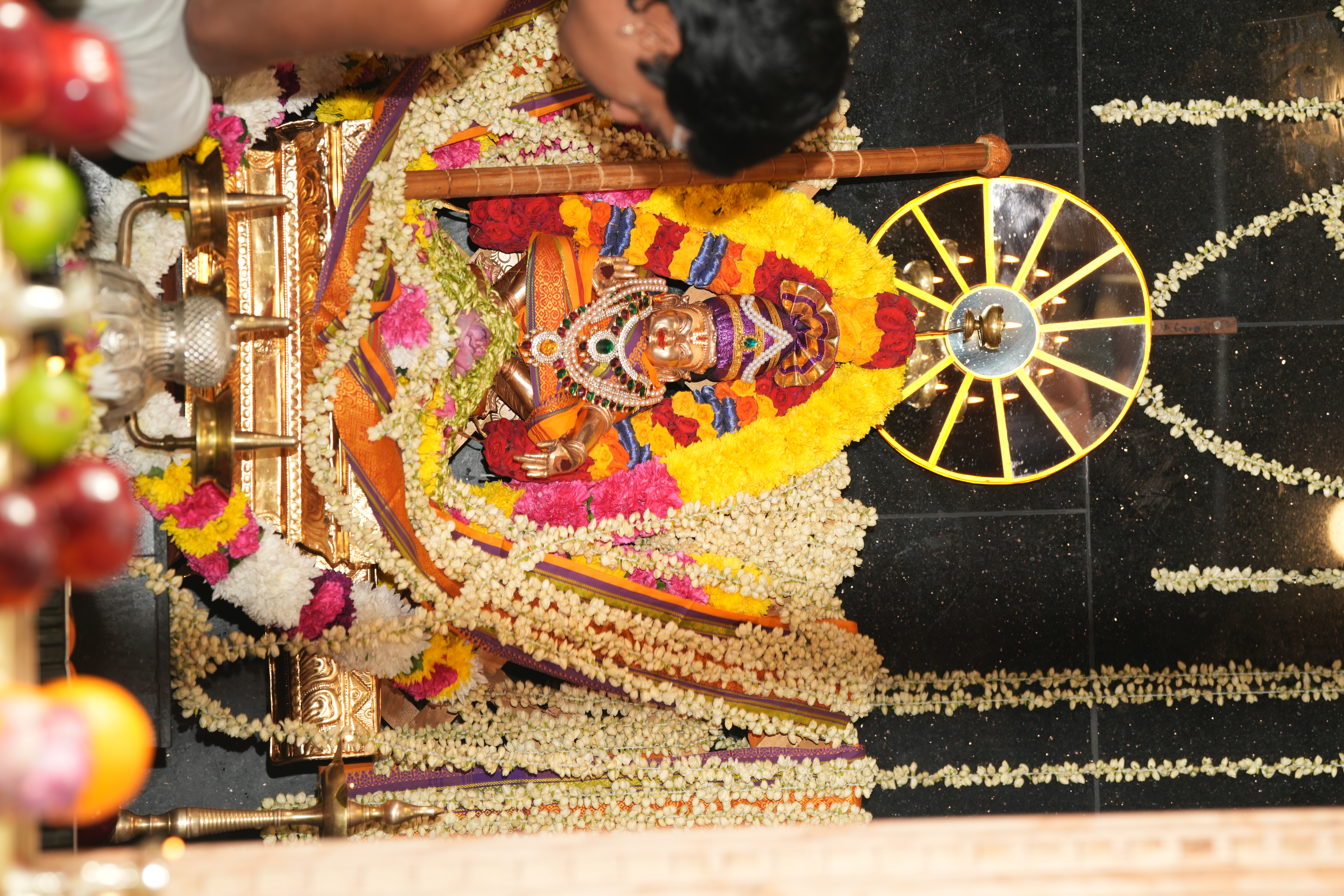 - Divya Gandhastha Haridra Kumkumam Samarpayami – I offer sacred turmeric and kumkum.