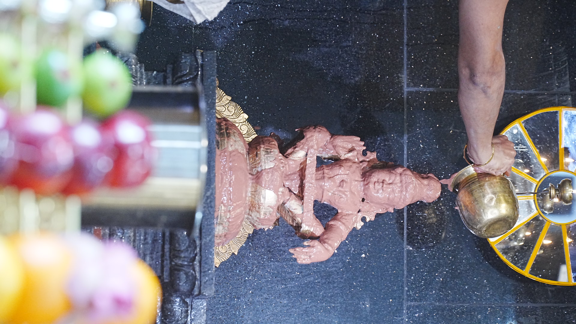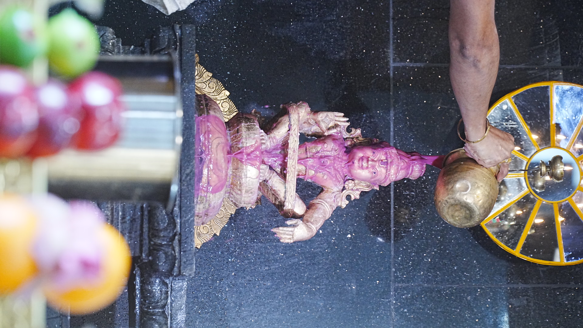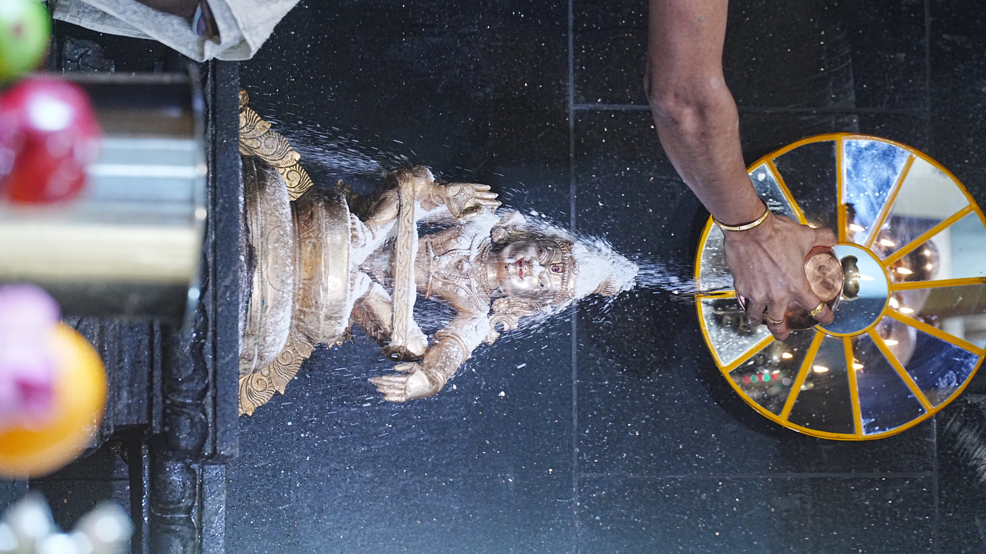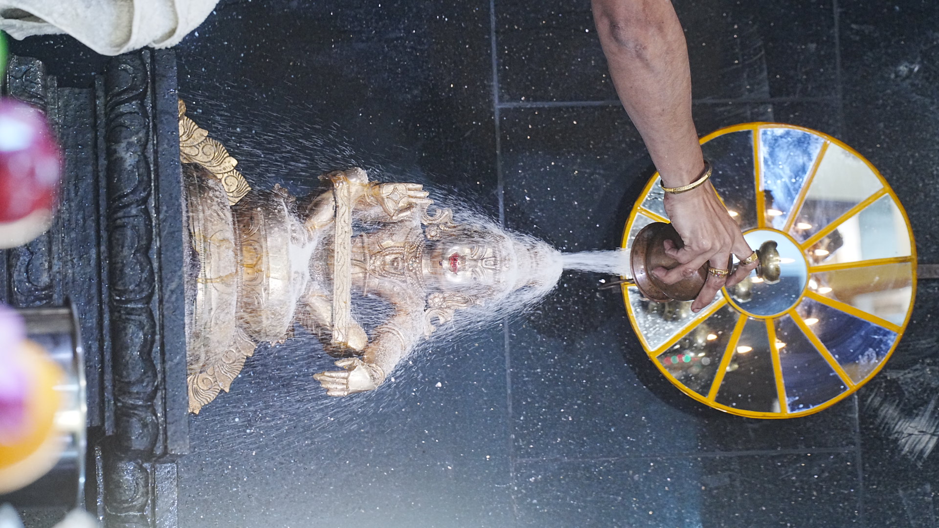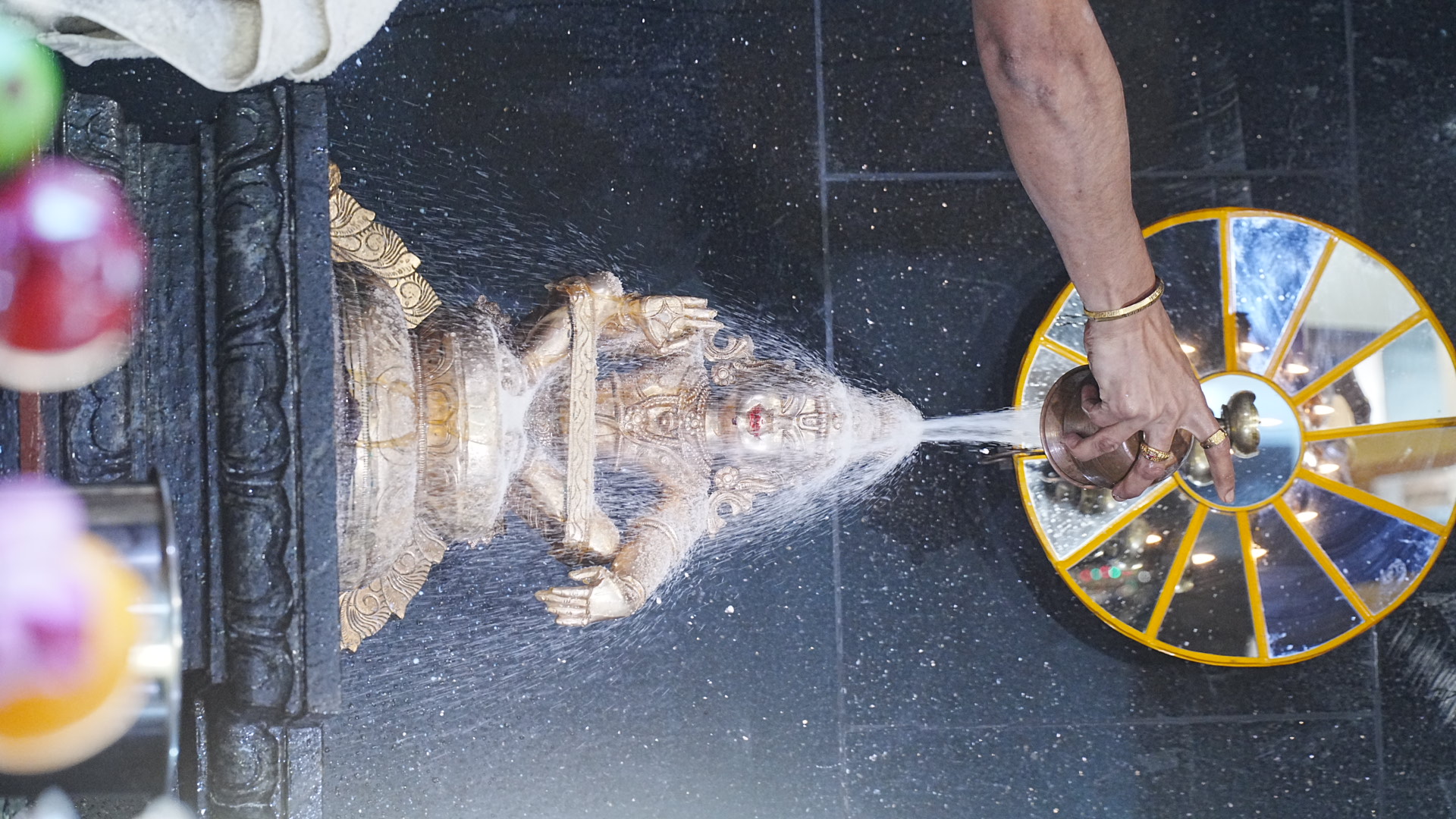 - Snanānandaram Achamaneeyam Samarpayami – I offer water for sipping after the bath.